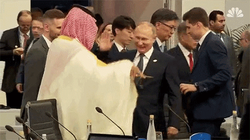 原文标题:俄罗斯沙特互动刷屏:G20峰会普京沙特王储兄弟般击掌击掌、握手、相邻而坐……20国峰会上,普京和沙特王储穆罕默德·本·萨勒曼的热烈互动,兄弟般击掌